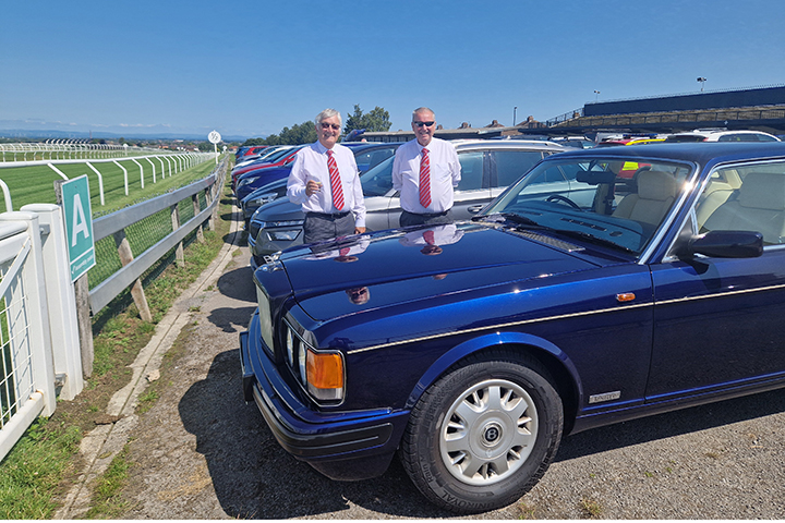 To make an entrance worthy of the PGM of West Lancashire the PGM in accompany with RWBro. Geoff Lee arrived by ‘Helicopter’. The original plan was that both would abseil down to the entrance of the venue, but at the last-minute health and safety would not allow it . Disappointed they landed safely in the entre of the racecourse. Waiting to welcome them on the car park were VWBro Geoff Bury and WBro. Tony Thackrah having a very cold Gin and Tonic (driver not drinking) from the well-stocked fridge of the Bentley they had driven up in. As always in Mark Masonry it was a very happy and friendly day with an excellent meal to end the day. The PGM and RWBro Geoff Lee took their seats in the Helicopter and disappeared into the wild blue yonder back home, while VWBro. Geoff Bury and WBro. Tony Thackrah after another very cold Gin and Tonic (driver still not drinking) drove home in style in the Bentley.