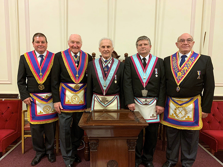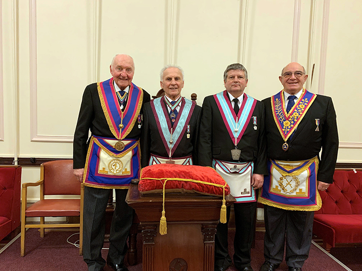 | WBro. Norman Jones ProvGStwd addressed the Wardens, The Lodge DC, WBro. Roy Hedges ProvAGDC addressed the Overseers and WBro. Eric Hart, the PGM’s Representative delivered the address to the Brethren. |