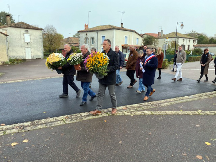 | The Mayor lead the proceedings The French flower, the equivalent to the British Poppy is called Le Bleuet or Cornflower, and was chosen because there is blue on the French flag, and the French soldiers uniform. |
