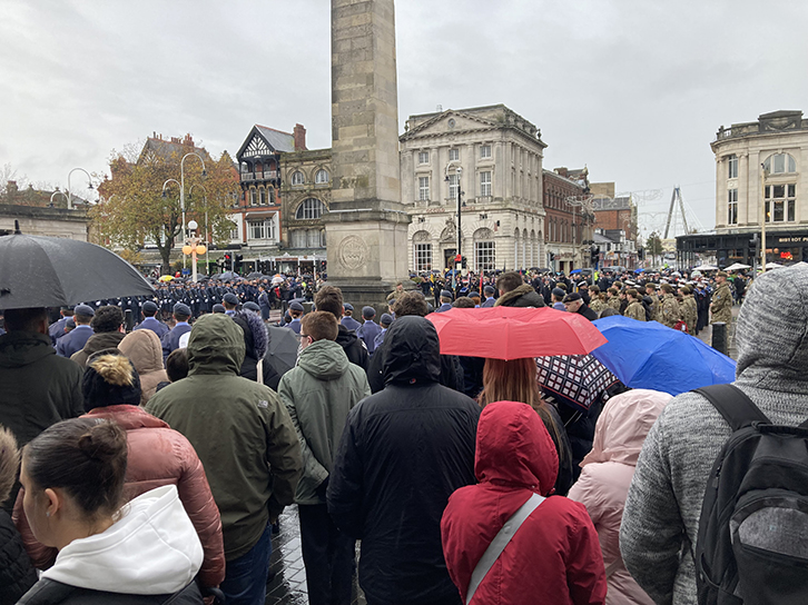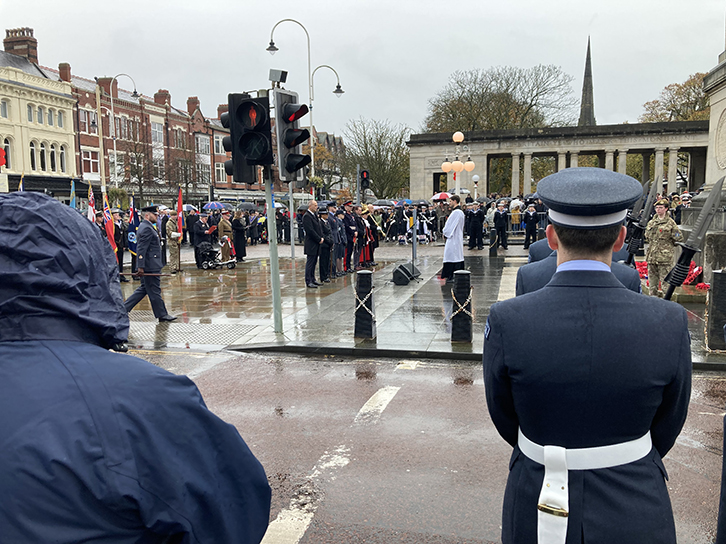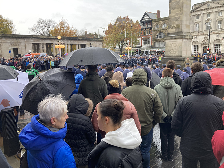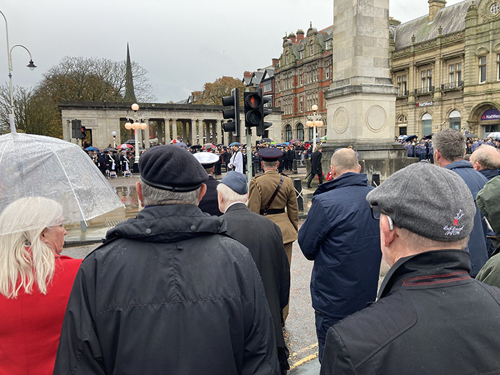 | As usual The Mayoral Office for Sefton authorised a large turnout at the Southport Cenotaph with a full Marching Procession of Dignitaries and Veterans, with band, in attendance. Many local Groups including the Craft Mason contingent and, of course, representatives of the Mark Degree were present and Wreaths were duly laid by all. This year W.Bro Mark Barton of Freshfield Mark Lodge, the Provincial Senior Grand Warden, laid the Mark wreath and a few photographs were able to be taken on the damp Remembrance Sunday morning. |