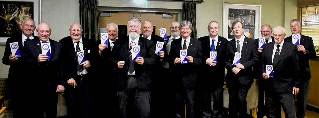 The lodge members proudly display their “Magic of the Mark” leaflets |