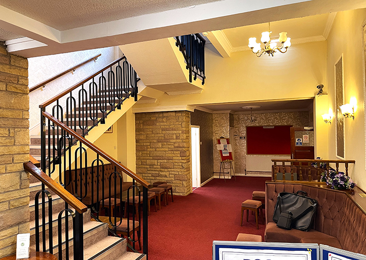 | Made my way to the Hall and found a nice comfy seat to pass the time away, It is just like a Tardis, from the outside nothing very exciting but once inside it’s another story, it always appears very clean and in good order, a superb welcoming entrance, a first class Temple, a very pleasant dining room complete with a well-stocked bar, once you climb the stairs it just seems to go on forever, another large function room complete with dance floor, board rooms and several other meeting rooms, it certainly gets my vote as being excellent. Time past by quickly and before to long Lodge members and visitors alike began arriving from all over the Province, with the usual genuine handshakes and greetings which we associate with the Mark, a few gathered around the bar (for coffee of course) sharing lots of stories and laughter and looking forward to this special meeting. |