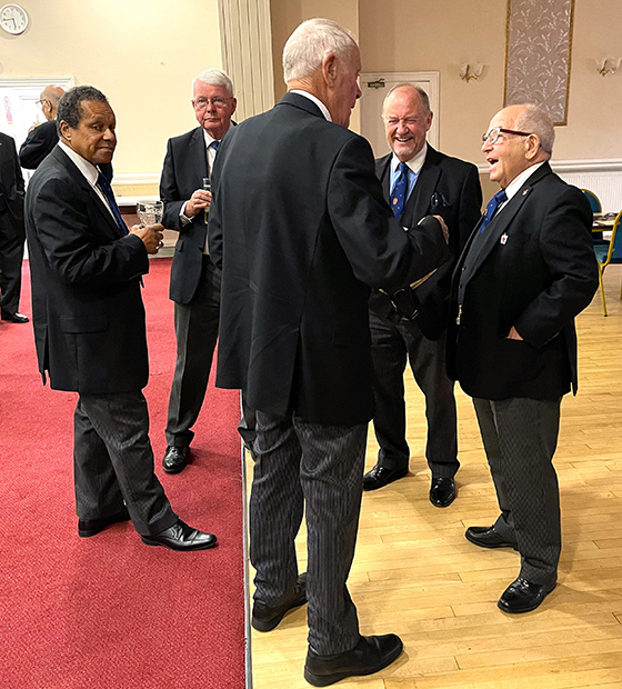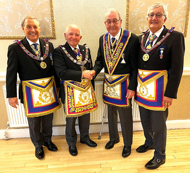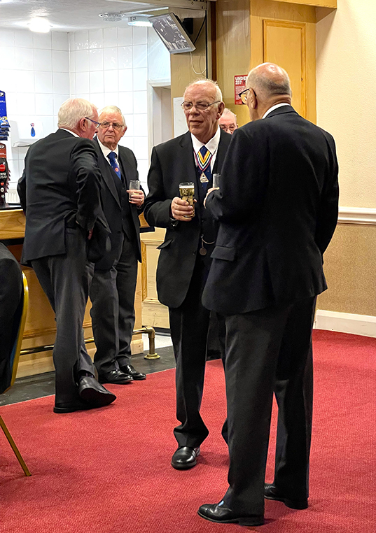 | Following a collection for the Charities, the PGM accompanied with Roy and the Grand officers retired from the meeting who then made their way to the dining room so that a few pictures could be taken to commemorate the occasion. |
