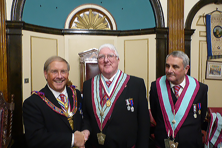 | The presentation of the Keystone Jewel and the Masters address were given by WBro Derek Gaskell. The Warden’s address was given by WBro Dave Richards and this was followed by the Overseers address given by WBro Steve Walls. The Deputy Provincial Grand Master, WBro Giles Berkley then gave the address to the Brethren. All these maintained the same high standard that had been set by WBro Brian O’Hare. |