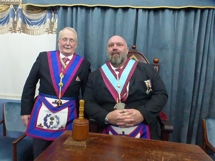 | The Installation meeting in March saw WBro Lucas Kelly return to the chair in the presence of the APGM, VWBro Geoff Bury. Now to the meeting held on 19th May. WBro Lucas Kelly invited VWBro Ian Nairn to take the chair in order to deliver a Fred Lomax lecture called, ‘The Mark and the Arch,’ or as Ian put it, England v Scotland. | |