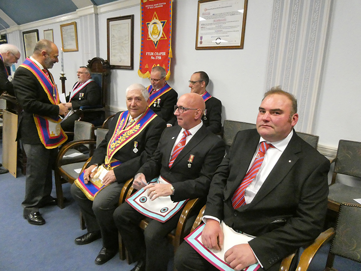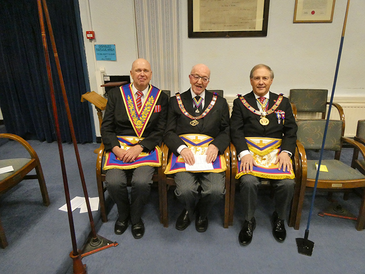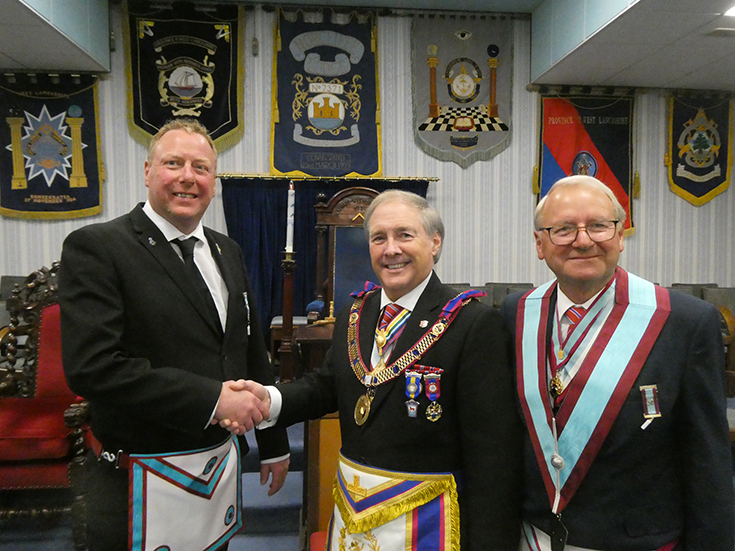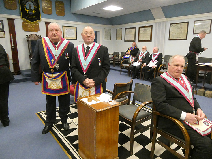 The WM worked through the summons up to the Advancement and then asked WBro. Gordon Hinchliffe PAGSwdB to occupy the chair for the first part of the ceremony which was to advance WBro. Andrew Greenlees a member of Royal Oak Lodge. WBro. Hinchliffe then asked WBro. Alan Fairhurst GJD to take over and conduct the second part. The WM then gave an explanation of the working tools.