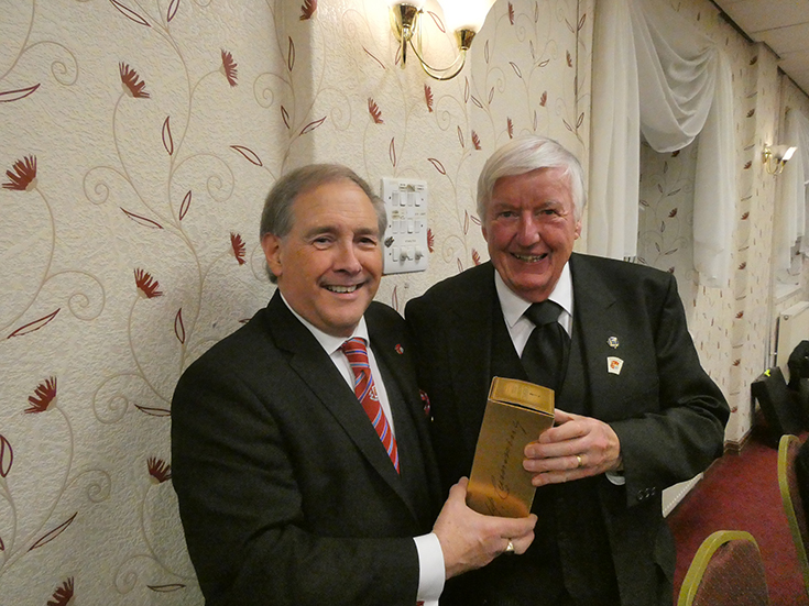 Finally, WBro. Berkley presented a patent of appointment to WBro. John Whitley PProvGJW, who had not been able to collect it at Provincial Grand Lodge in 2024, although he had been there.