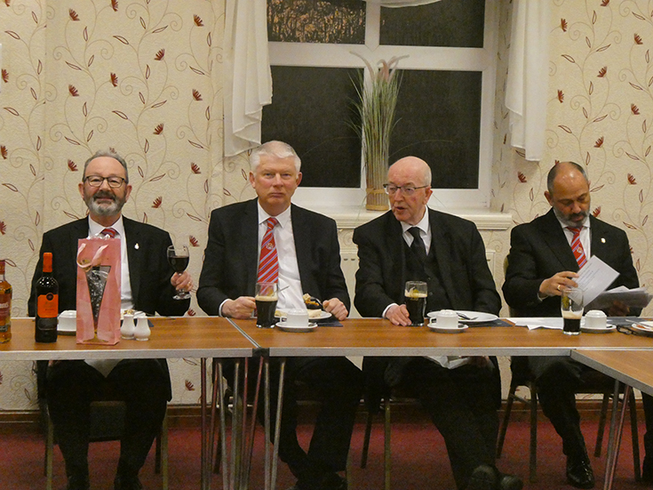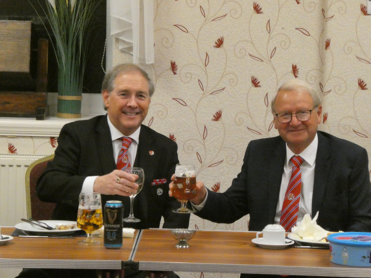 The Lodge was closed and the Brethren retired to the bar and onto the festive board for a buffet meal and lively conversation.