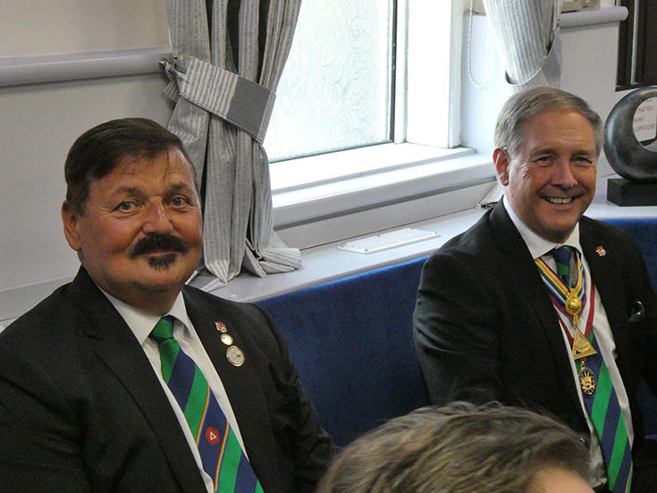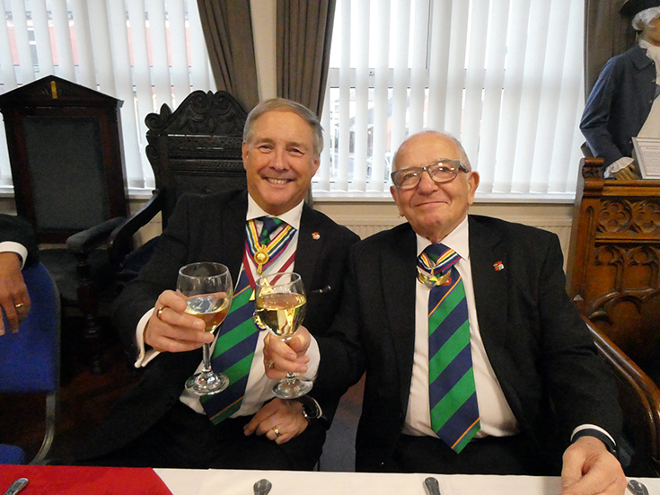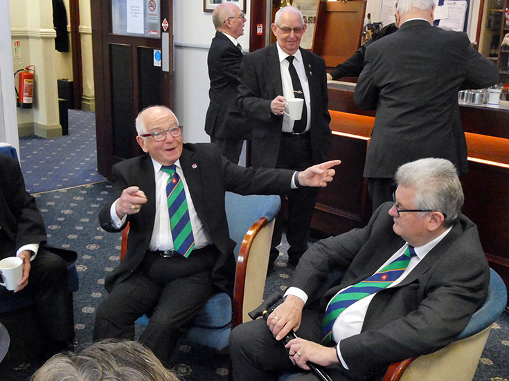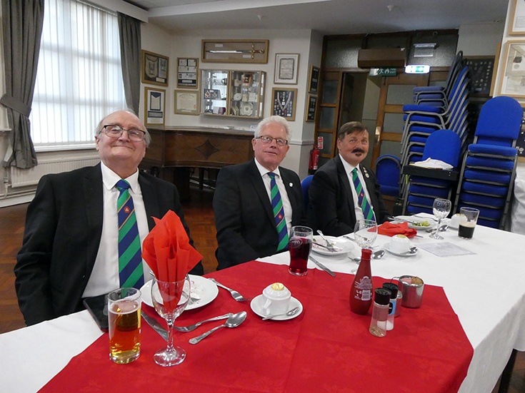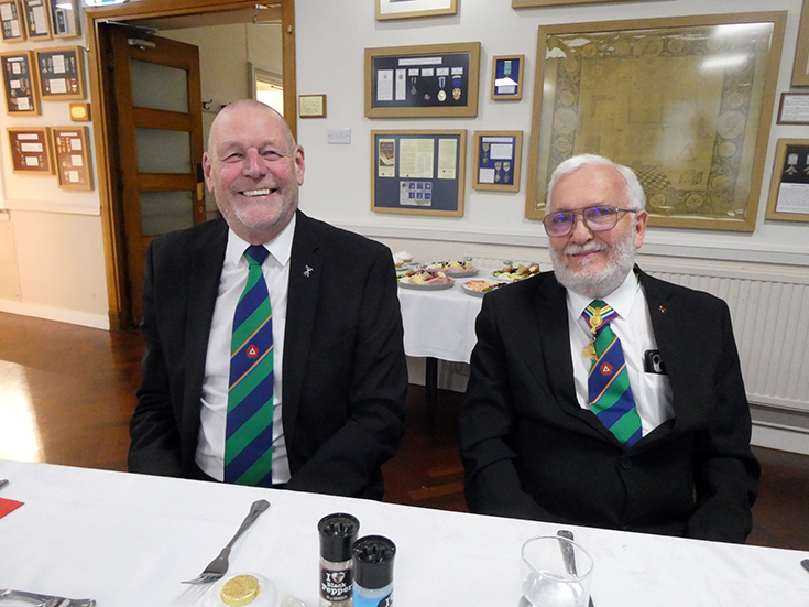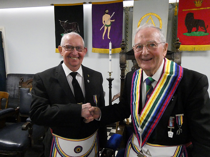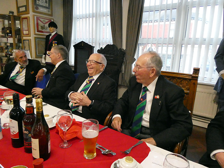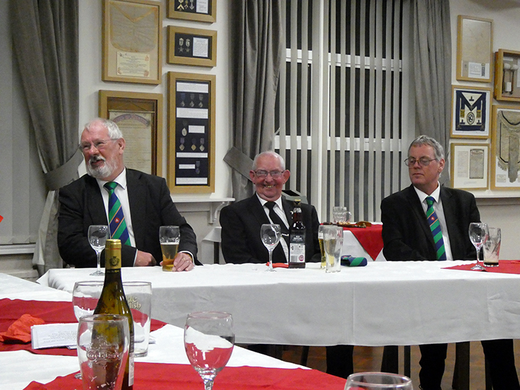| Bro. Chris Sage proposed the health to Bro. Clive and presented him with a Royal Ark Mariner tie that had previously belonged to their good friend (and ours) WBro. Ernie Gavan. A very nice touch. | |