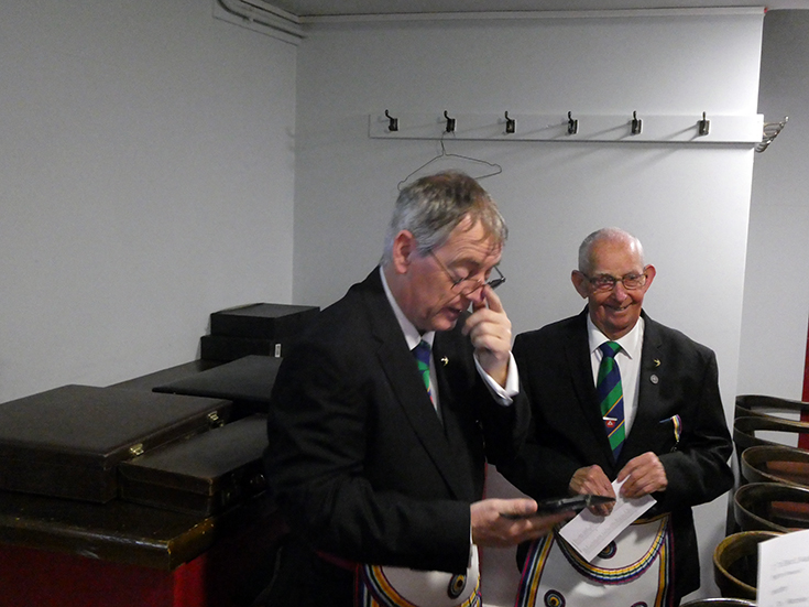| Salutations were given to the RWPGM under the direction of WBro. Dean, for which he thanked the Brethren and then to WBro. Bob McGown and the holders of RAM Grand Rank, who thanked all the Brethren for their kindness. | |
