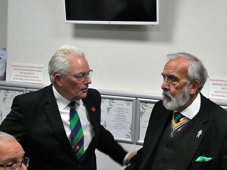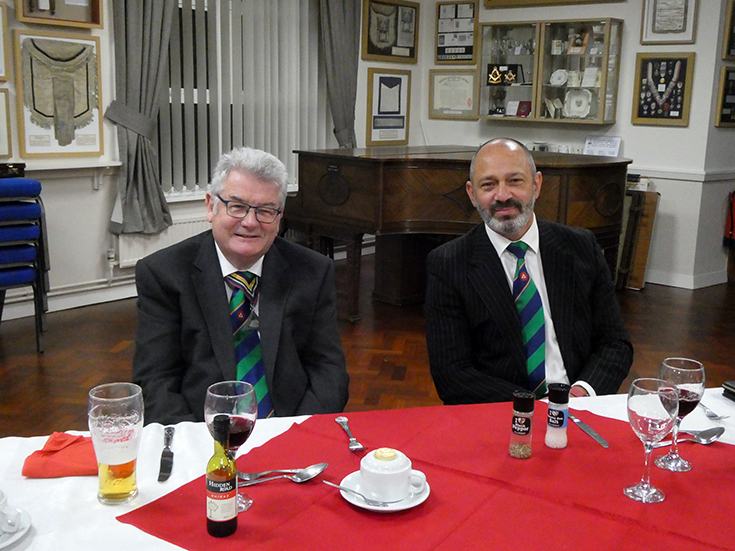 | The Lodge was duly closed and the Brethren retired to the bar area and onto the festive board, which was lively with good food and banter, which was thoroughly enjoyed by all present! | |