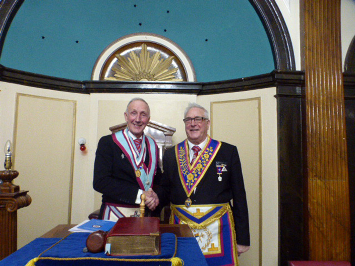 | After the ceremony WBro Povey brought congratulations from the Provincial Grand Master to WBro Alan Ray on taking the chair for the first time and to WBro Alan Ray for a fine ceremony. Before WBro Povey sat down; the WM presented him with two cheques for Charity. These were gratefully received and will be faithfully applied. During the risings WBro Steve Walls presented a Grand Lodge Certificate to Bro Myran Anduyan. | |