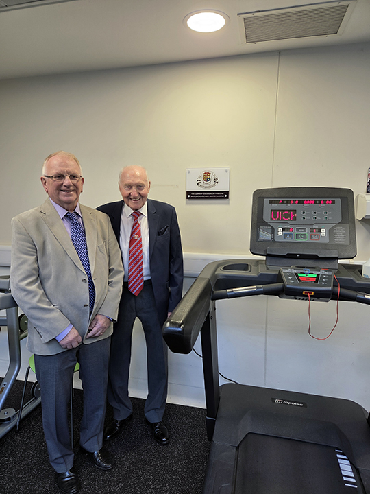 W.Bro's. Eric Hart & Andrew Cogle,who are both members of Heartbeat, attended Heartbeats PNE base on Wednesday 29th October and are pictured below with a new Treadmill that the Charity bought with funds of £3354 provided by the West Lancs Mark Charity Fund.
