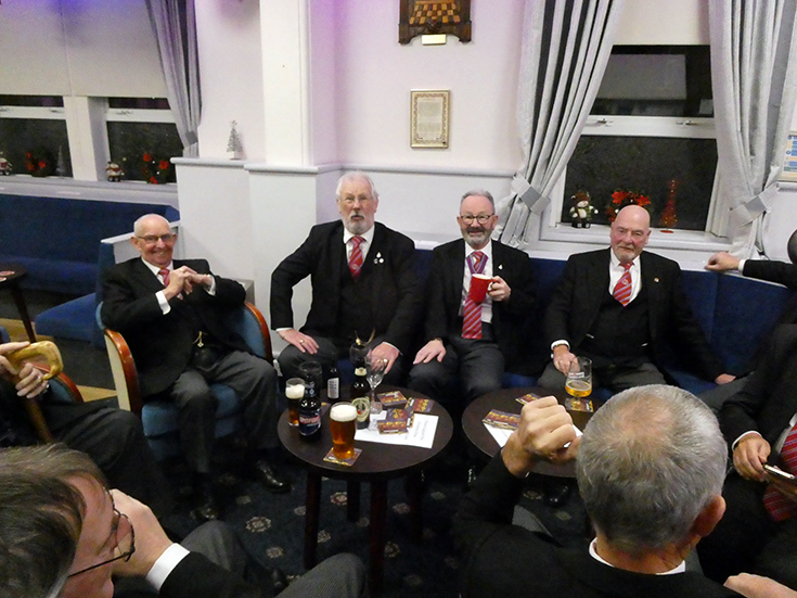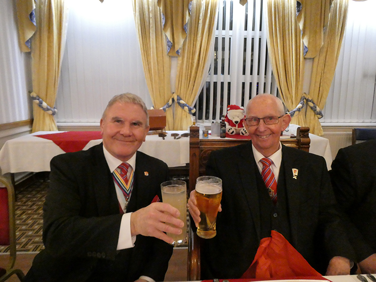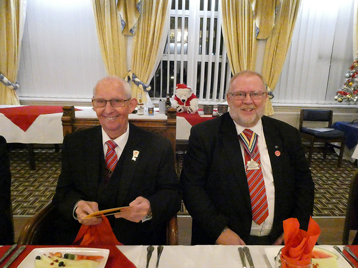 | Lively discussion and a friendly atmosphere accompanied a very nice festive board, which was moved along efficiently by WBro.’s Rashid and Askew. | |