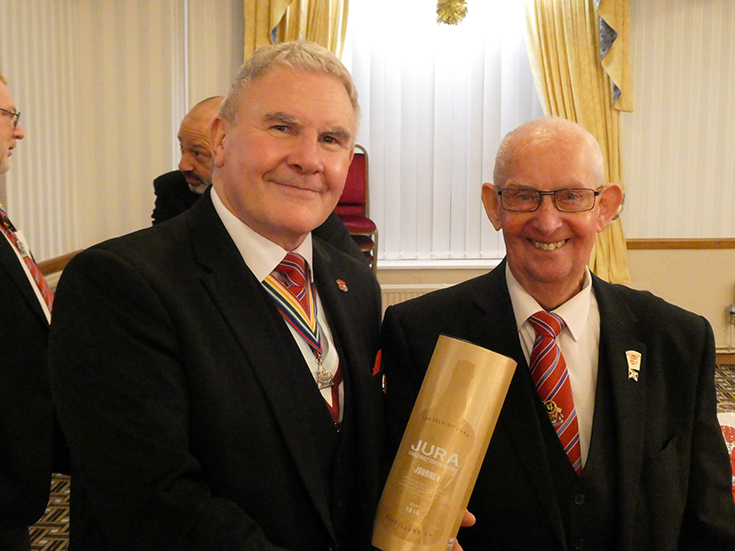 | WBro. Craig Scott ProvGStwd presented the WM with the keystone jewel. | |
