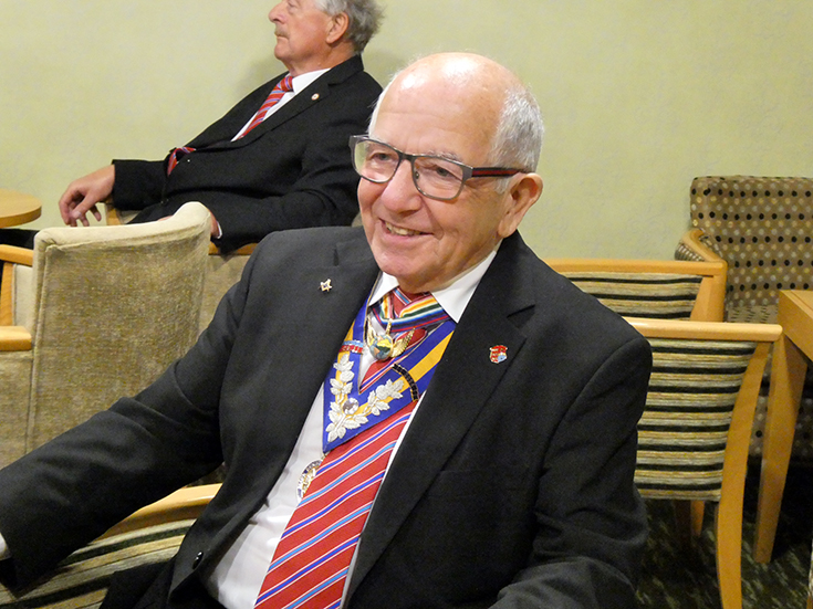 Having gained admission Dr Peter Robinson, a retired G.P., was obligated by Frank who then handed over the reins to Alan Gregory of Morecambe Mark Lodge No 716 for the middle part of the ceremony. Your northern correspondent left the chair of master overseer to complete the ceremony with the working tools being presented by APGM Geoff Bury.