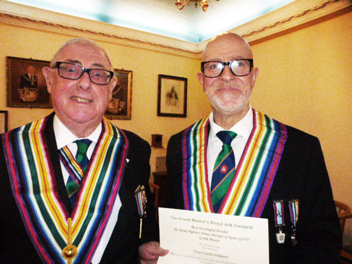 WBro Derek Gaskell gave the address to the Commander and WBro Maurice Evans delivered the Exposition to the brethren to his usual high standard.   When the ceremony was over, WBro Maurice Evans brought the congratulations of the Provincial Grand Master to WBro Neil Cooper on taking the Commander’s Chair, and thanked, WBro Derek Gaskell for the ceremony.