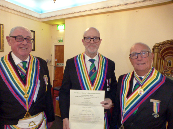 It was then back to the summons which included a Ballot for a new member, which proved successful.  The next item was for the DC, WBro David Rawcliffe to present the Commander elect Bro Neil Cooper for Installation.  When WBro Neil Cooper had been proclaimed, he appointed his offices for the ensuing year.  Then WBro Fred Hargreaves presented the Keystone Jewel address to the Commander.