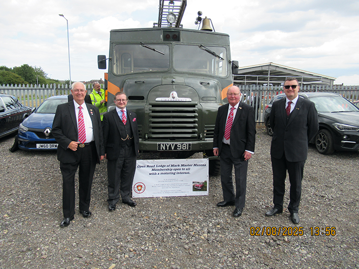 | I arrived at the Louth Masonic Centre at 10.00 a.m. on Saturday August 2nd 2025 to find the car park full, and cars parked down the road. The Masonic Centre is situated on an Industrial Estate and the roads were quiet. I then met up with Iain, and two more West Lancashire Mark Masons, and past members of the Motorcycle Group, namely Bro. James Upshon and WBro. John Askew ProvAGDC. We robed in a very busy anti-room and took our seats in the very nicely appointed Lodge Room, our West Lancashire Mark ties prompting a good deal of attention, from the “locals” a few of whom hailed from West Lancashire. | |