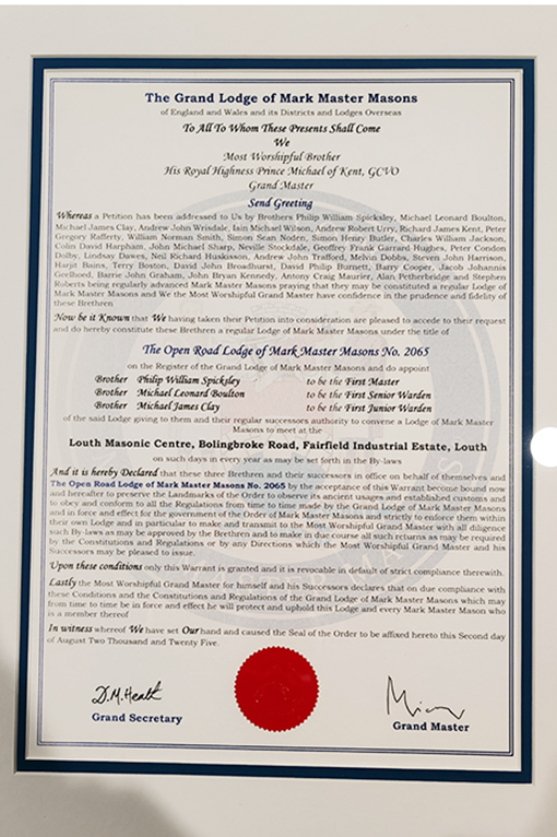 Open Road Lodge of Mark Master Masons No.2065 (Lincolnshire) |