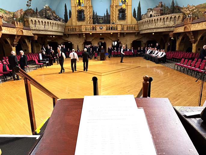 On entering the Hall I found a hive of activity under the watchful eye of the Prov DC W.Bro. Arthur Robinson along with his Deputy and Asst’s running through the entry and exit of today’s meeting, they are never happy until they have it just right, which it usually is. It is always nice to see so many smiling faces and sharing the warm and genuine handshakes we share in these two degrees. Once the practice was over everyone started to chill out with a nice drink of coffee, biscuits and a good old chinwag.