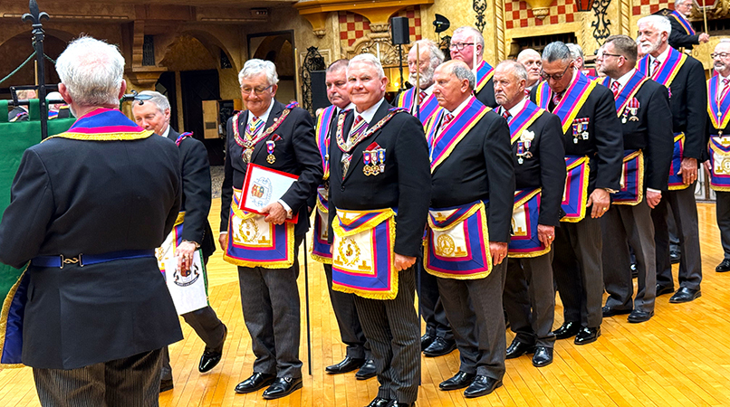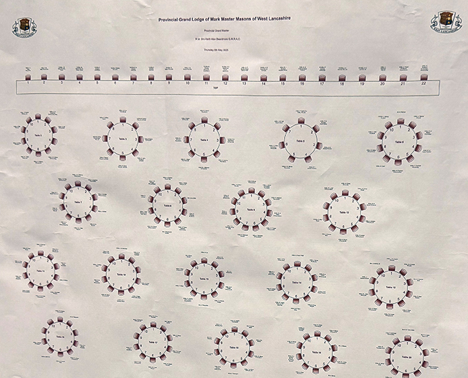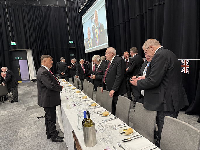 Our RW PGM Keith Alan Beardmore G.M.R.A.C. gave his address to the meeting, which was well received by all present, next a real highlight for our Brethren, Provincial Grand officers for the year were appointed, invested, and saluted. A vote of thanks was given to the Provincial Secretariat under the leadership of W.Bro. Kevin Chicken PGStwd Prov Grand Secretary. The Captain of the stewards, the Master and Brethren of Walton Mark Lodge No.161 and Philadelphia Lodge of Installed Masters No. 1646 for there help and assistance in all the arrangements they had made for this special meeting. Now the Provincial Grand Lodge was closed for another year and everyone was wished a safe journey home following the Festive Board.