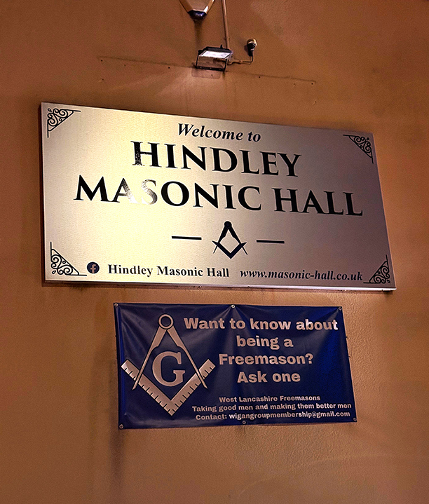 | Really looking forward to visiting this hall which I haven’t been to before, it’s not far but still left early to join the queue on to the usual, M60, 30 minutes later and then it was on to the A58. A long wiggly road which seemed to go on forever, then a sigh of relief a sign “Welcome to Hindley” appeared, it was only now that the fun began! We travelled down the full length of Market Street at least twice, no sign of the hall. In the end we parked up in a Free Car Park, and went for an enforced stroll, before too long “Bingo” there it was down a wide alleyway next to a huge building, well lit but still hard to spot if passing in a car. | |
