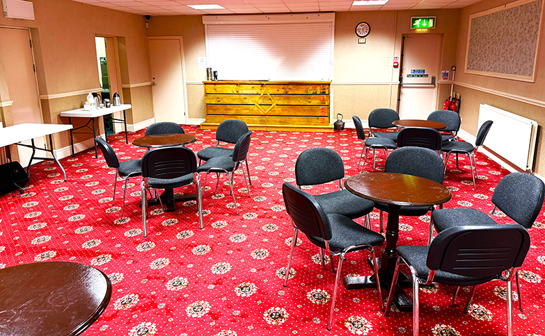 | Once inside it was a very warm and friendly atmosphere, lots of members and visitors alike welcomed us to Hindley, I went off for my usual mooch around, not the biggest Hall ever but great surroundings, well decorated, clean and well maintained including a very smart Temple. | |