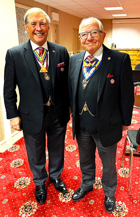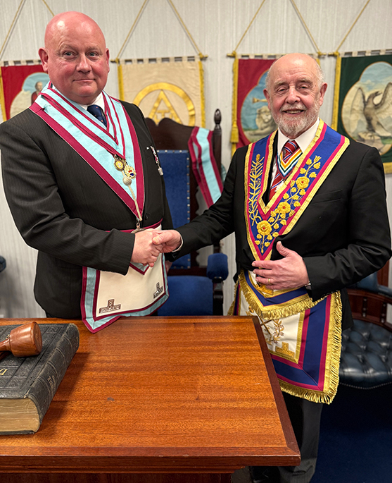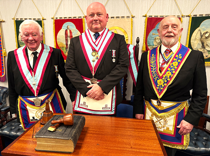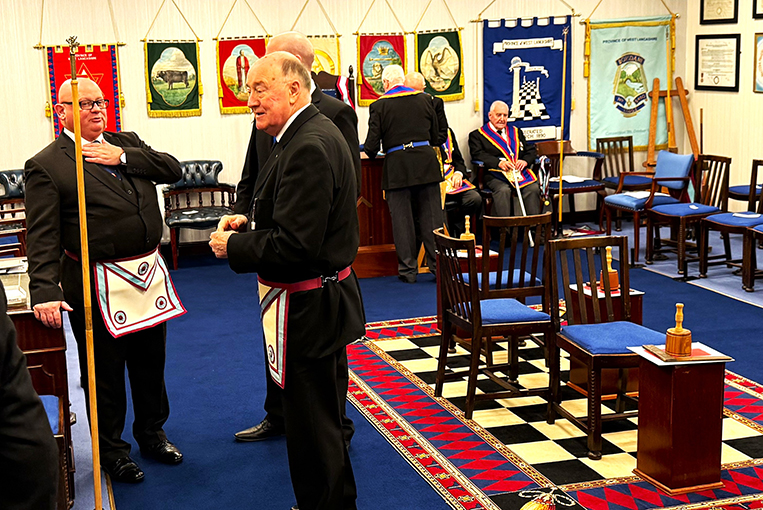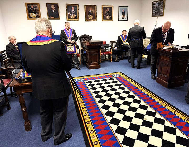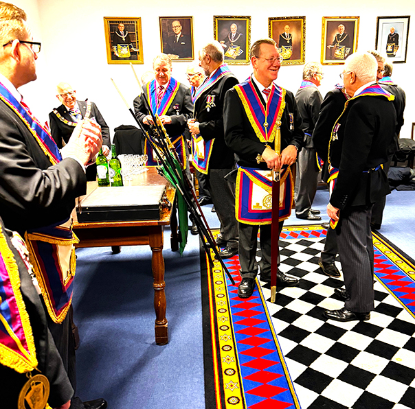| The meeting commenced on time at 5.30 pm and following several housekeeping items the PGM RW Bro. Keith Alan Beardmore G.M.A.C. entered accompanied by Acting Grand and Provincial Grand officers, he was presented to the W.M. who welcomed him into the Lodge on behalf of all presented. The gavel was offered to Keith who said he would accept it on this occasion for a short time so as to introduce the members of the team to everyone, once this was done the Lodge W.M. resumed his seat. | |