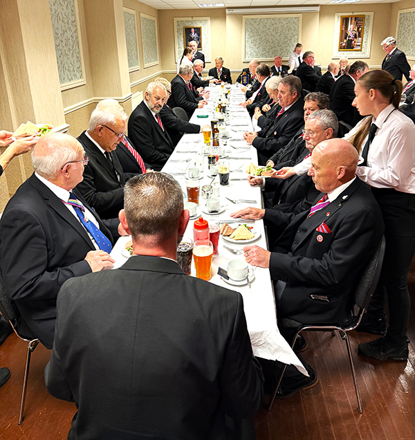 | The usual Toasts followed the meal along with some excellent responses, and a fine raffle for the Charities was taken. All too soon the time had come for everyone to say their genuine goodbyes of friendship and leave to all parts of the Province with that warm feeling of another great Mark meeting and if like me already looking forward to the next meeting. | |