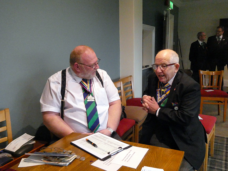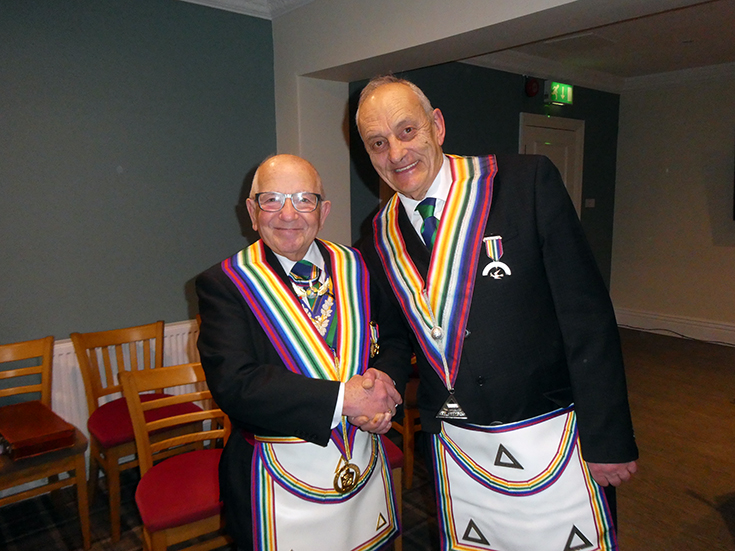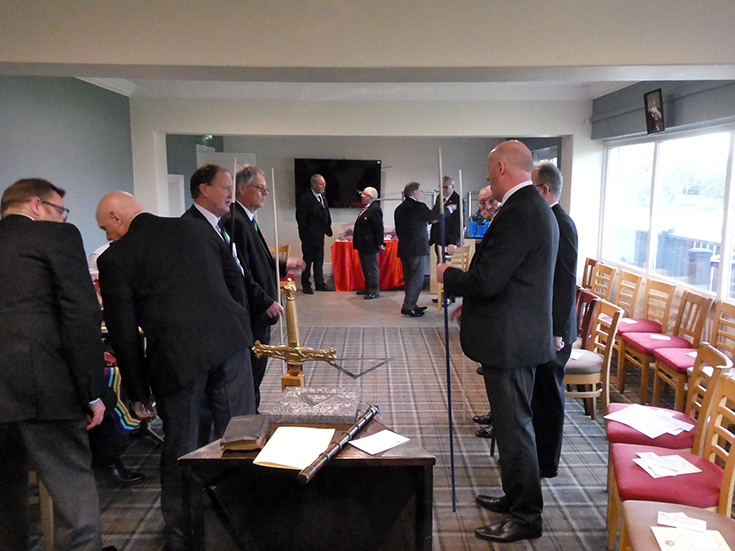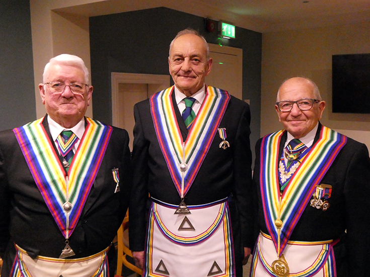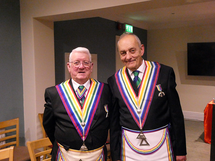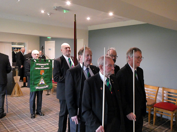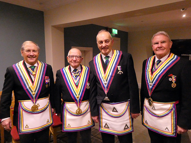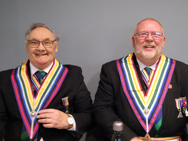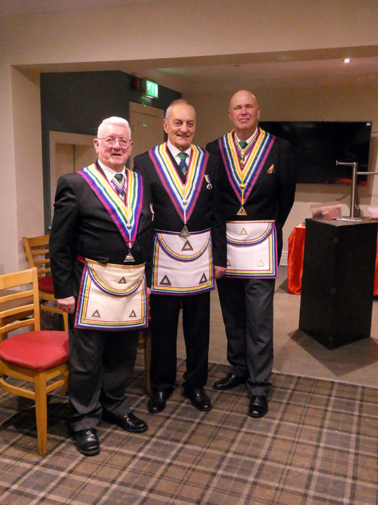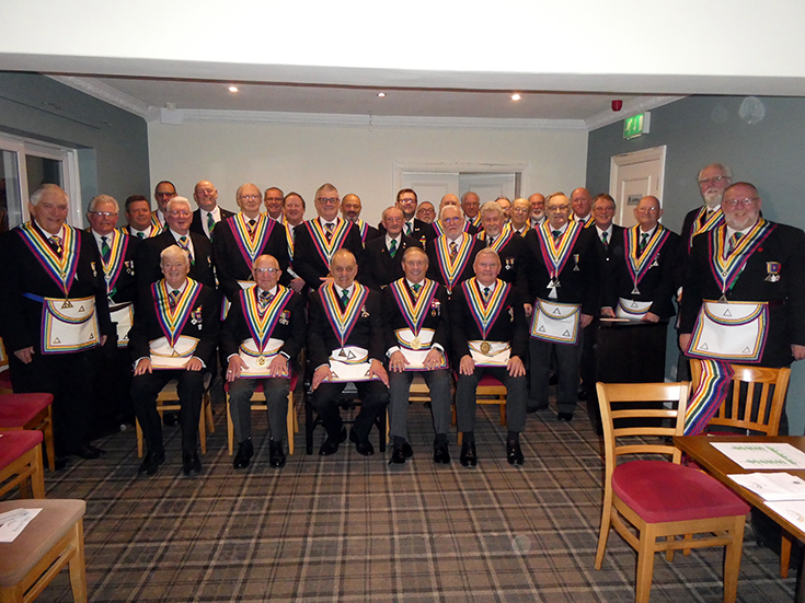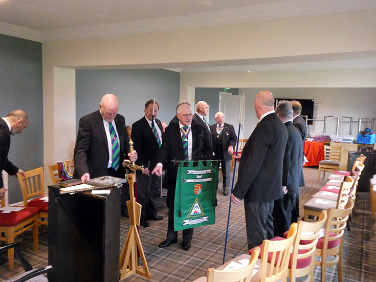 | The Worshipful Commander, WBro. Peter Walker ProvRAMGR opened the Lodge with 36 members and guests being present. The Commander worked through the summons, which included a Memoriam for Bro. Frank Kennedy, a member of the Lodge who had recently passed away. The assembled Brethren stood to order for departed merit. | |