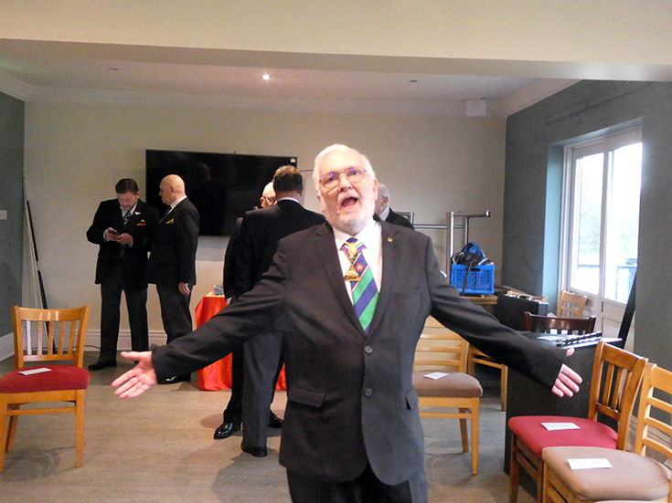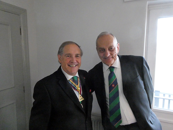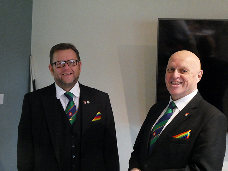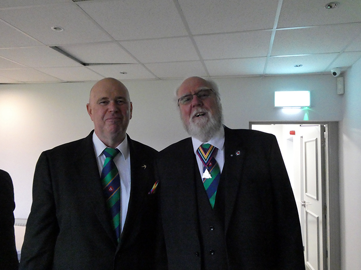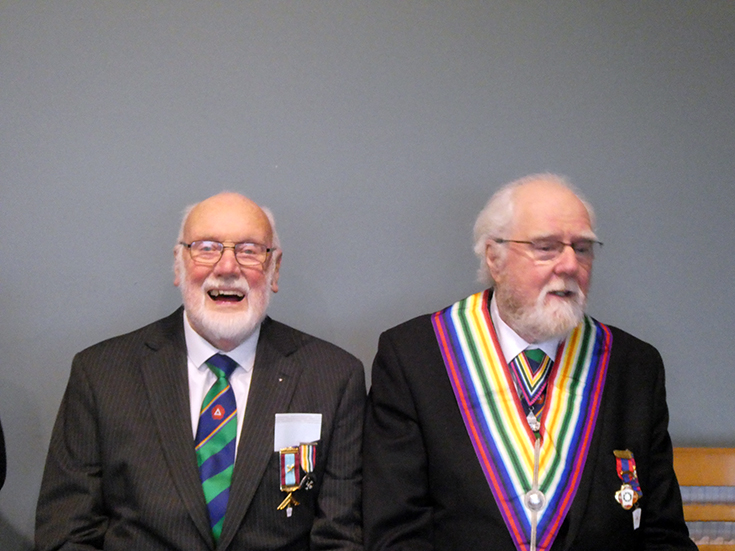 | The PGM, RWBro. Keith Alan Beardmore GMRAC, entered the Lodge with members of the Provincial team and was warmly welcomed by the Commander and offered the sceptre of the Lodge, which was received and swiftly handed back. | |