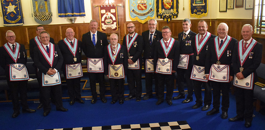 Circumstances dictated that WM Tony Cassells had to call upon members to fill various roles at somewhat short notice. Ian Cottam was drafted in to undertake the middle portion of the ceremony and also act as registrar with his place at the master overseer’s pedestal being taken by Geoff Waters. John Edwards-Donnelly acted as senior overseer.
