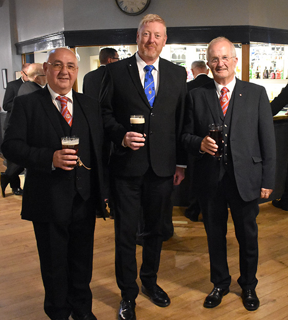It was the first outing for Tony and his team following the installation meeting and I have to observe that it all panned out very well indeed. Wardens Alan Hilton and Terry Pearson performed their roles with distinction whilst senior deacon David Baker, ably assisted by junior deacon Bernie McGeough conducted Mike throughout the degree in fine style. The efforts of inner Guard Steve Harris and Tyler Darren Stainton should not be overlooked as their work was not only accurate but clearly audible to all seated in the large room.