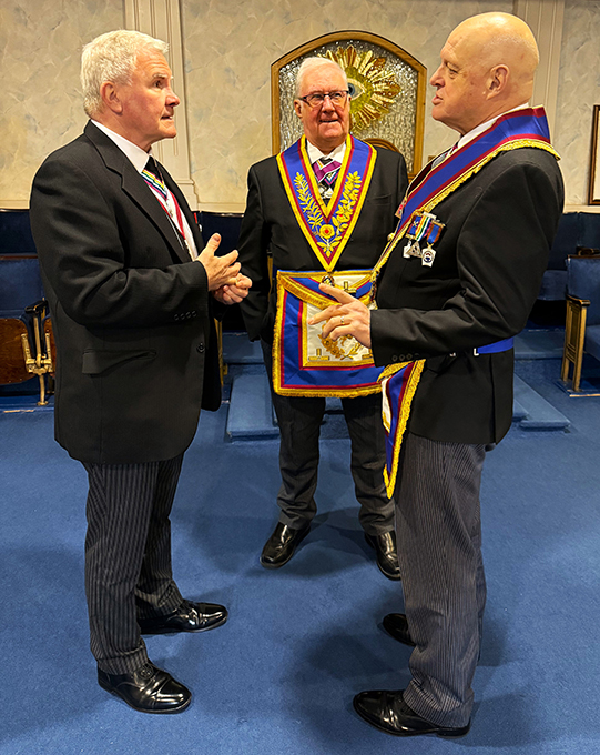 | The RWPGM then had much pleasure in presenting the Treasurer W. Bro. S. L. Walls PGSD with a Diamond Patron collarette in recognition of his contributions to Mark Charities. Several further items were dealt with before the Lodge was closed in due form at 12.40 PM. |