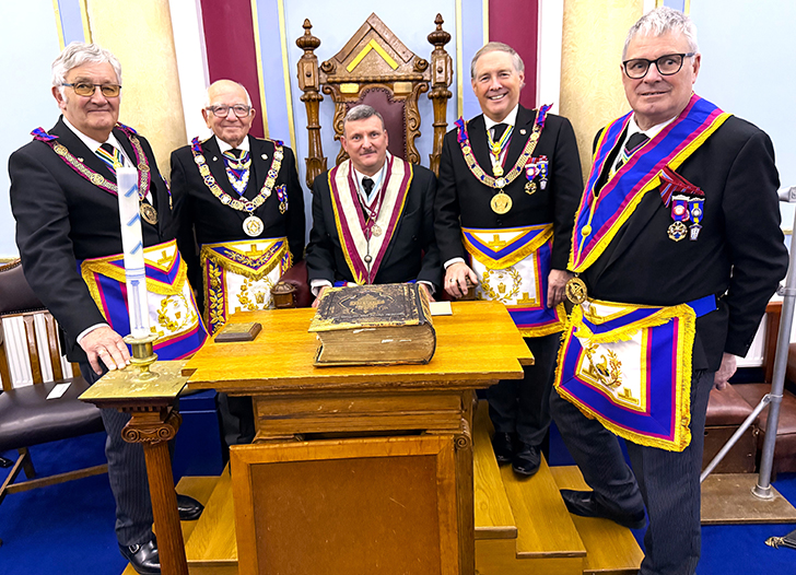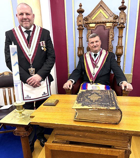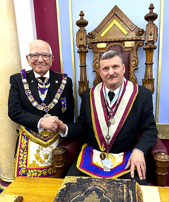 | A first-class Installation ceremony to place W.Bro. P. Burrows PPrGJW into the chair of Adoniram was carried out by W.Bro. Lane, who also presented the Book of Constitutions, the Charity Jewel, and the Warrant of the Lodge, the Tools of the degree were presented and explained by Bro. A Longbottom Junior Overseer. Our PGM was the first to give his personal congratulations to the newly installed W.M. and wished him and the members a happy and healthy year ahead, perhaps with some work to do perhaps a candidate or two to advance. |