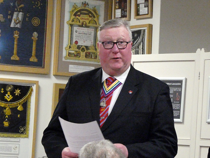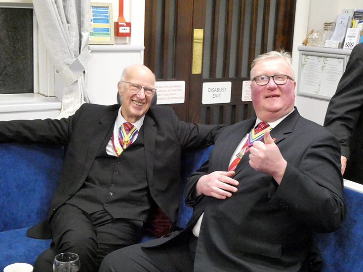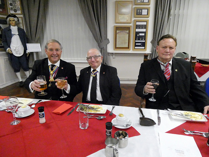 | 29 Brethren, plus the candidate for the evening were in attendance. The WM’s of Imperial Mark; WBro. Clive Gitsham, Wyre Mark: Bro. Jim Gregson and Cleveleys Mark; Bro. Keith Carter were also in attendance. | |