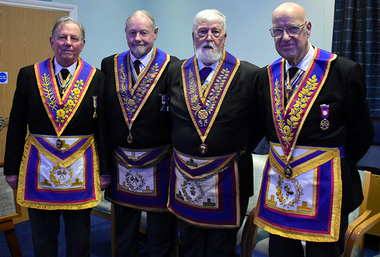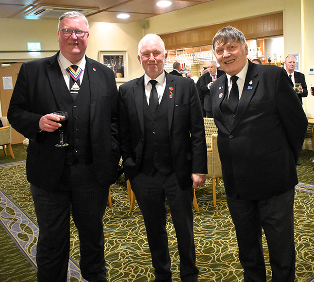 | Principal guest on the evening, representing PGM Keith Beardmore, was Steve Walls. He was accompanied by his son Chris Walls the provincial grand senior warden and Gordon Sandford provincial grand steward. Another acting officer Les Newlands provincial grand senior deacon is the lodge director of ceremonies. | |