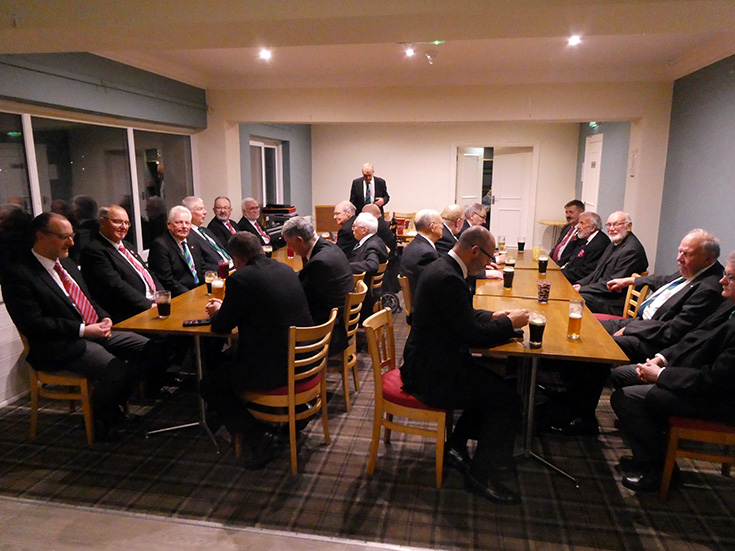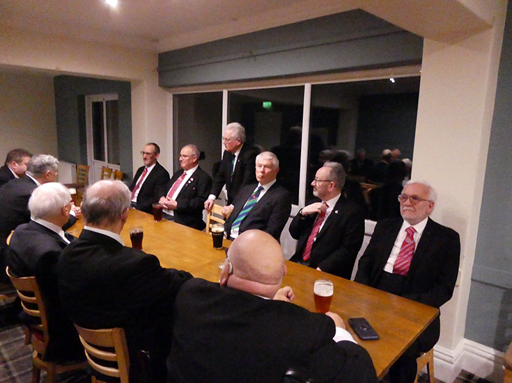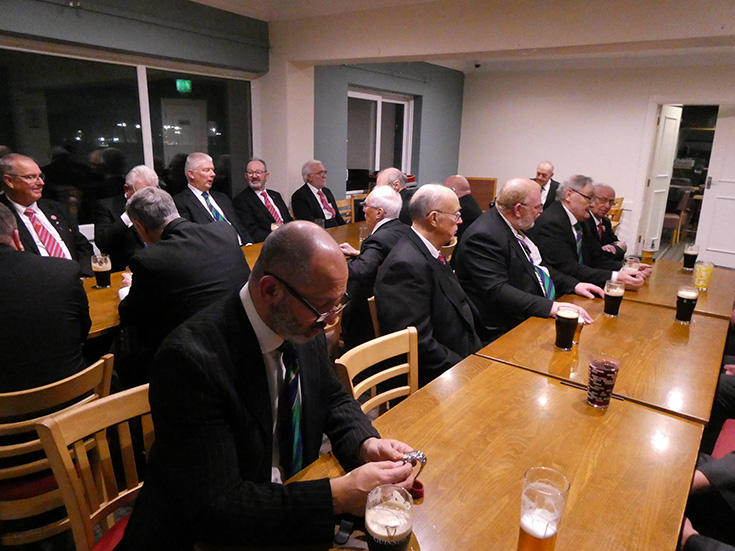 | The Lodge was closed and the Brethren assembled in the bar with the members of Prince Setanta Lodge of Mark Master Masons No 1446, for refreshments and the festive board. | |