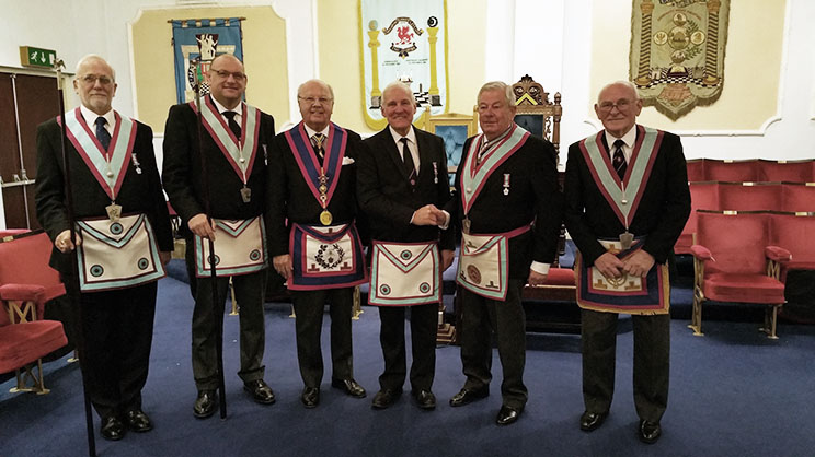| On Thursday 15th February 2018, Dave Stewart the WM of Aeon Mark Lodge at Leyland opened the Lodge in fine style before welcoming VW Bro. Geoff Lee, PGJO, Deputy Provincial Grand Master of the Province, to the Lodge. |