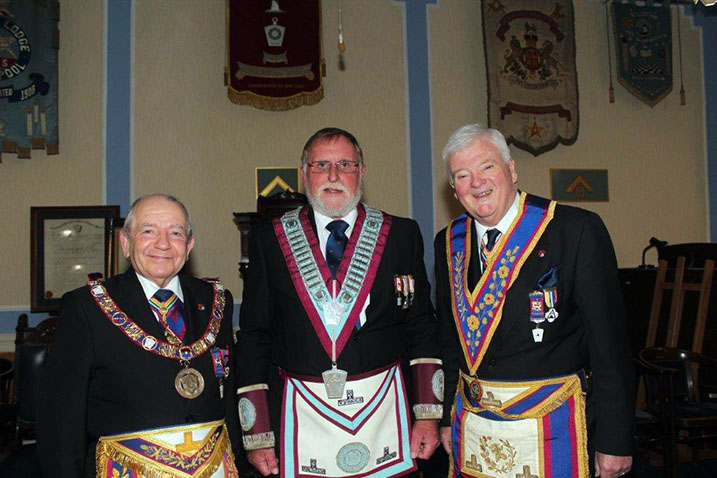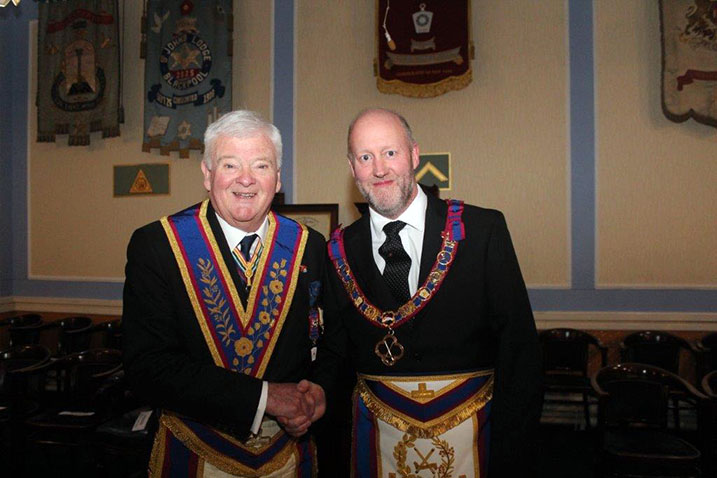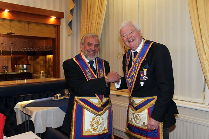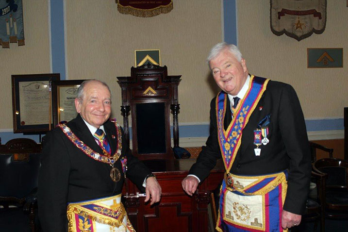 | Keith took up his position next to the SW and delivered a wonderful summary of the 60 years which Bob has spent serving, enjoying, and enhancing the Mark Degree. Our Provincial Secretary john Bicknell read out the certificates marking 60 years from both Grand Lodge and West Lancashire, and the Lodge closed with an air of expectation for a great Festive Board. |