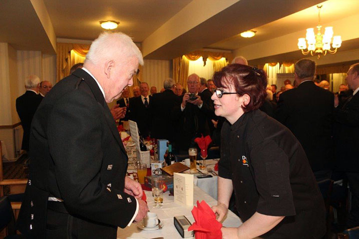 | Bob McGown then responded in wonderful style. He thanked all those present, especially John Forster for his very kind words, and the ProvGM for bringing the whole Provincial Team for this special night. He also mentioned some of his friends who are no longer with us, but Bob ended by inviting us all to his 70th in 2027. A standing ovation followed, and we had all had a fantastic night, sharing the celebration of 60 years as a Mark Man of W Bro Robert Young McGown PGSD. |