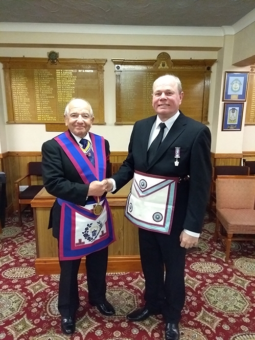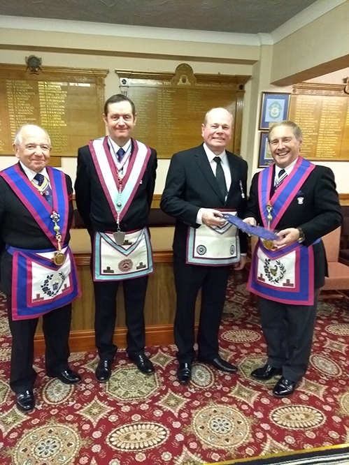| On a chilly November evening, a goodly number of Mark Men assembled at Cleveleys Masonic Hall for the much anticipated advancement of Duncan Smith. The Lodge was opened at 6.30pm prompt by Bro Daren Gardner WM and the agenda proceeded with until , following a reportĀ WBro Tony Farrar , Provincial AGDC entered and announced that the RW Provincial Grand Master , Bro Keith Alan Beardmore stood without and demanded admission. Our RW PGM was escorted into the Lodge along with WBro Giles Berkley PGStwd APrGM and introduced to Bro Gardner who welcomed them warmly. The PGM then said that this was a totally unplanned visit. He and Giles had just been passing, saw a light on and decided to investigate (Pull the other one. Its got bells on!). |