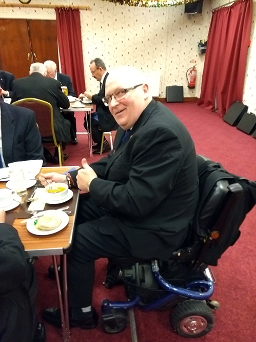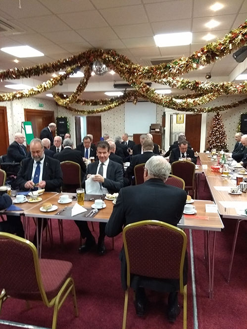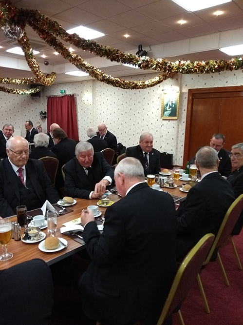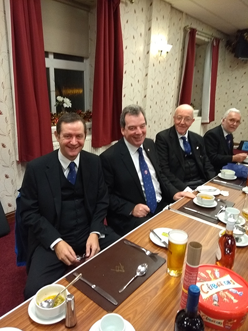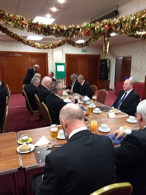 | We then retired to the bar (Where else?) and then to the Festive Board where our RWPGM and our Assistant took their leave having dined previously. A most enjoyable meal ensued with good food and even better company and, after coffee, Duncans proposer and good friend WBro Harry Cox PGSD rose to propose the toast to his health. For those who are unfamiliar with the man, Harry explained that Duncan is a member of Broadwater Lodge and Hesketh Chapter. He is also a member of Quingenti Lodge as a Past Provincial Steward, served as WM of that Lodge and later as DC for a number of years. He served the North Fylde Group of Lodges & Chapters for some fourteen years as secretary, vice chairman and, ultimately Chairman, and is now an APrGPs in the Royal Arch. A most distinguished mason indeed. |