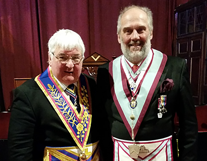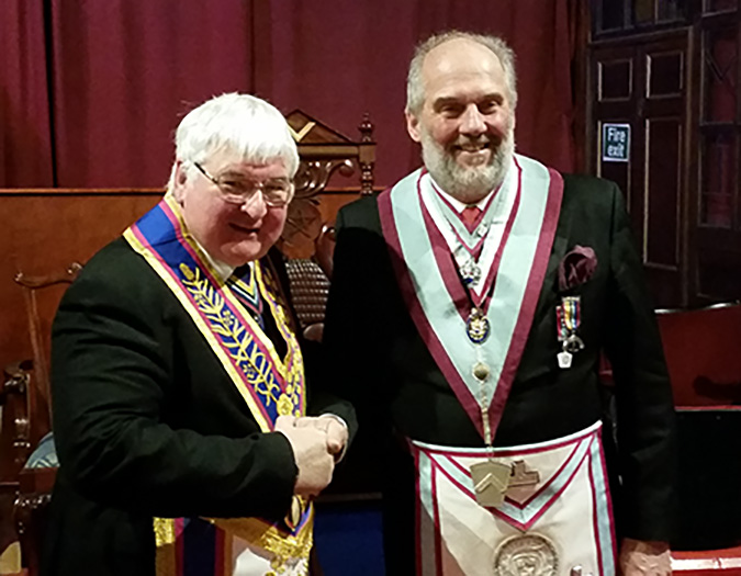 W.Bro. Ernie Gavan congratulation the New Worshipful Master |