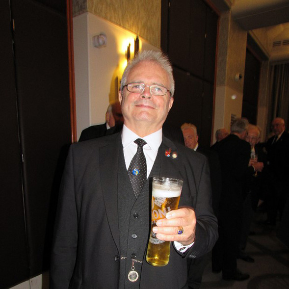 | After removing our regalia and depositing our cases in the cloakroom of the Grand Connaught Rooms, next door to The Grand Temple, we repaired to the bar lounge area to enjoy a celebratory drink with the recipients from West Lancashire. The Grand Director of Ceremony called for us to take our seats in the Banquet Hall. The assembled brethren stood to order whilst The Pro Grand Master was escorted to his seat. After grace the brethren from all over England, Wales and Districts and Provinces Overseas sat down to a rather pleasant three course banquet followed by coffee. Some thirty-five West Lancashire Mark Master Masons were seated in the Connaught Rooms supporting our seven newly promoted brethren along with our Right Worshipful Provincial Grand Master Keith Alan Beardmore, and The West Lancashire Mark Province. The toasts were short as were the responses and soon the brethren were making their way home. |