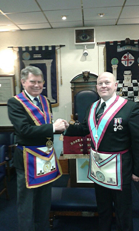 | On Wednesday 11th April, Bro. Malcolm Bell was excellently installed into the chair of Rose & Thistle Mark Lodge No.158 by the Installing Master, W.Bro. Arthur Pettit. The representative of the Rt.W.PGM was W.Bro. Victor Henry Norris, PGJW who commented on the excellent manner in which he had been installed. |