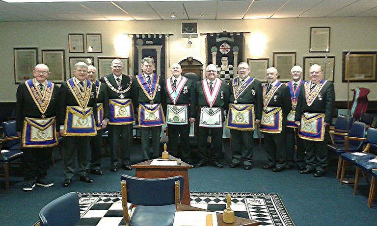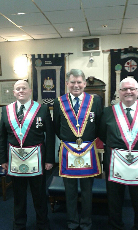 | Also in attendance was R.W.Bro. James Anthony Harrison, GJE, PDPGM, V.W. Bro, Kenneth Alker, PGJO and V.W.Bro. Terrence Maybury, PGJO. The address to the Master was deliver excellently by W.Bro. Derek Todd, PPrGJW, the address to the Wardens by V.W.Bro. Terrence Maybury, PGJO and the address to the Overseers by W.Bro. David Porter, PPrJGD. |