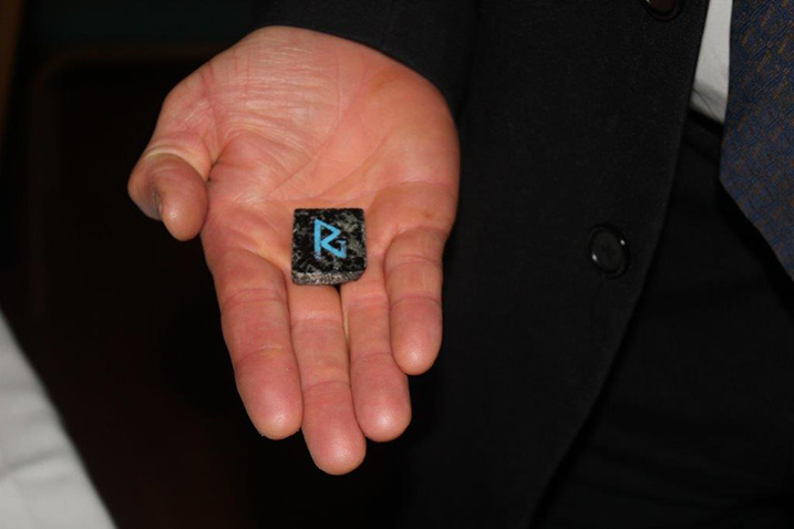 | A very convivial Festive Board followed and, when proposing the Toast to Richard, Tony Baker presented him with a miniature Key Stone bearing the Candidates Mark which he had fashioned – a really nice touch. |