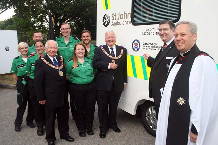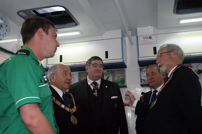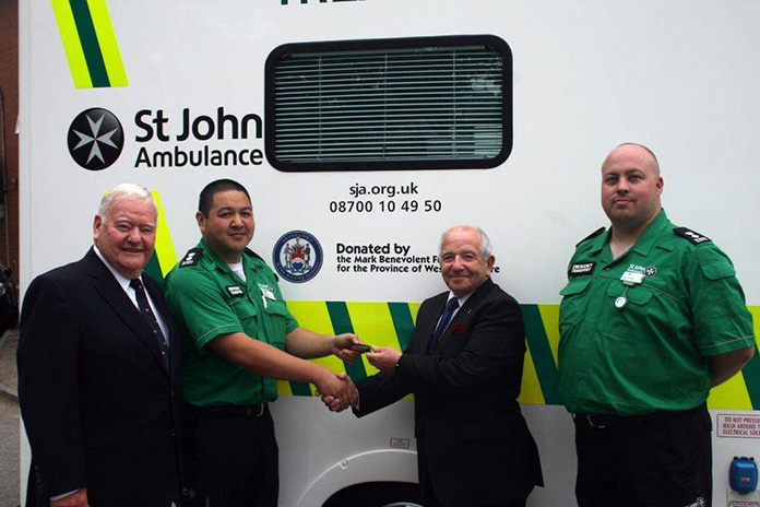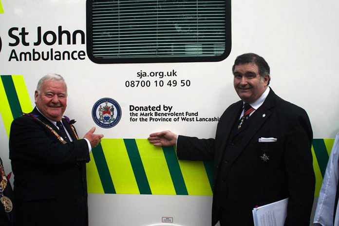 | We were greeted by the management, volunteers and supporters of the St John Ambulance charity for the official handing over of the vehicle. The close bonds between the Mark Degree and St John were highlighted by Tony Morris, who informed us that the MBF have donated 52 new vehicles, at a cost of £3.3m. He also informed our friends at St John that they could apply, through West Lancs Mark, for the running costs for the life of the vehicle. A magnificent extra surprise that clearly added significantly to the gift! |